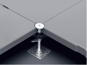 地板四角鍍鋅底座支承,不帶橫梁系統(tǒng)。每塊地板四角有90°圓弧,四塊板組合而成后形成一個(gè)圓,有一個(gè)鋁制螺母壓角固定。
